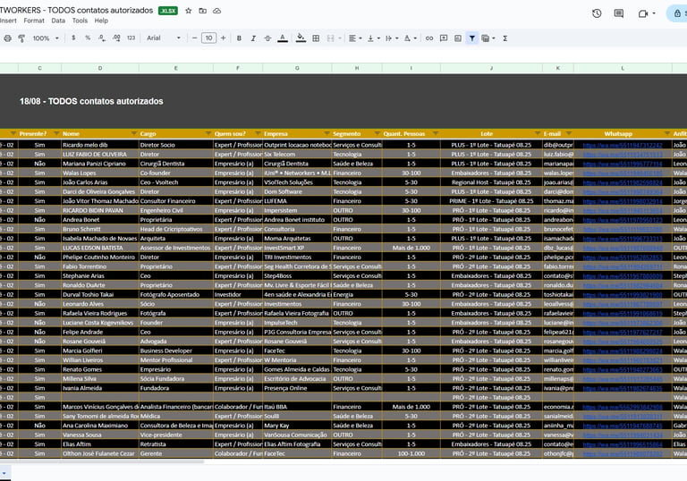 De nossos encontros presenciais, digitais e mentorias com mais de 1 mil contatos autorizados com nome, cargo, empresa, segmento, quantidade de funcionários, e-mail, WhatsApp e, o mais importante, que tipo de conexão para negócios procuram.